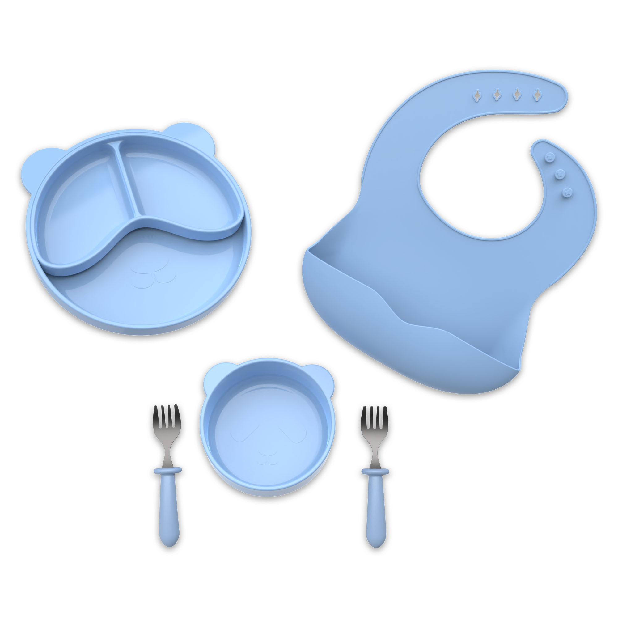 6件套分隔盤母嬰喂食套裝母嬰分格嬰兒硅膠餐盤